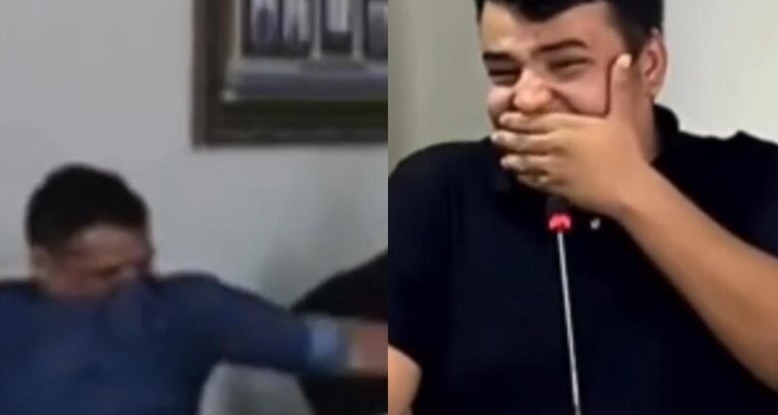 Os vereadores não conseguiram conter o riso e acabaram interrompendo a sessão em meio a algazarra provocada pela situação.