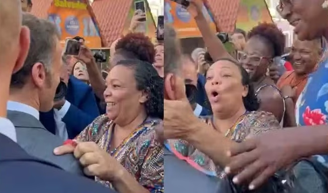 O presidente da França, Emmanuel Macron, foi agarrado por uma mulher enquanto passeava pelo Pelourinho, no Centro Histórico de Salvador, na quarta-feira (5). (Veja o vídeo acima) A breve passagem do líder francês pela capital baiana causou um alvoroço entre as pessoas que acompanharam a comitiva dele por pontos turísticos da capital.