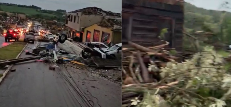 O temporal devastou a cidade, que precisou acionar a Defesa Civil. Bombeiros procuram vítimas nos escombros das construções que foram danificadas. A região também está sem energia elétrica, sem internet e sinal de telefone.