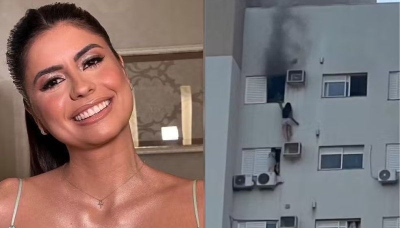 Juliane Vieira, de 28, ficou pendurada em um suporte de ar-condicionado para resgatar mãe e primo durante incêndio (Foto: Reprodução)