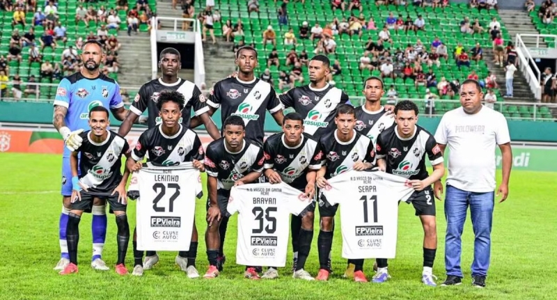 Vasco do Acre, do goleiro Bruno, posou com camisas em homenagem a Lekinho, Brayan e Serpa, suspeitos de estupro (Foto: Clemerson Ribeiro/Vasco-AC)