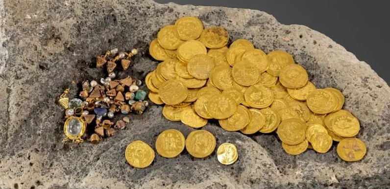 Arqueólogos descobriram um tesouro raro de moedas de ouro e joias de quase 1.400 anos na antiga cidade de Hipos, também chamada de Sussita, localizada nas colinas a leste do Mar da Galileia. A informação foi divulgada pela Universidade de Haifa, em Israel, na última quinta-feira (25).