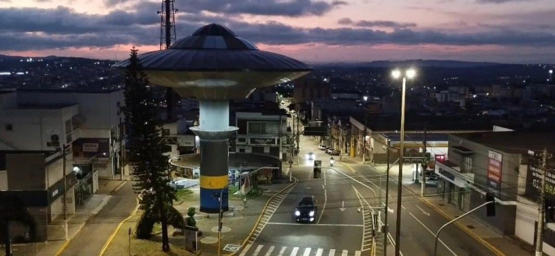 Desde 2003, a cidade de Varginha tem a Nave do ET, um enorme reservatório d’água suspensa que faz alusão ao caso. (Foto: Divulgação/Prefeitura de Varginha)