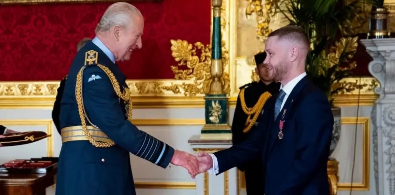 Nathan Newby recebeu do rei Charles 3° a medalha George, em reconhecimento pela sua coragem. Ele passou duas horas convencendo o "terrorista lobo solitário" Mohammad Farooq a abandonar seu plano no hospital local St. James, em 2023.