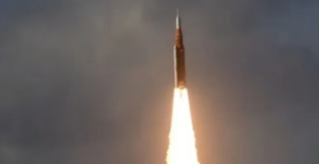 A missão utiliza o Space Launch System (SLS), o novo e gigantesco foguete laranja e branco da agência espacial, que realiza seu primeiro voo tripulado. Com mais de 2.600 toneladas após o abastecimento de hidrogênio e oxigênio, o SLS impulsionará a nave a velocidades extremas para circundar o satélite natural da Terra.
