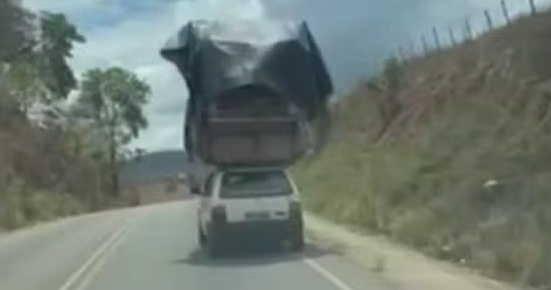 De acordo com a Polícia Rodoviária Federal (PRF), a carga ultrapassa o limite permitido pelo Código de Trânsito Brasileiro e se configura como transporte irregular, tendo em vista que pode representar riscos para os passageiros do carro e para outros veículos transitando por perto.