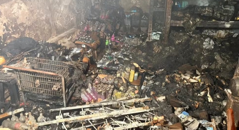 Ninguém ficou ferido, mas o interior do estabelecimento ficou completamente destruído. Corpo de Bombeiros foi acionado para conter as chamas.