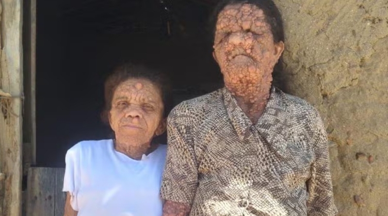 Maria Rita, de 75 anos, e a filha, Maria das Dores, de 54 anos, moram em Casserengue, no Agreste do estado, e vivem com neurofibromatose, uma condição genética rara que causa diversos tumores nos nervos da pele.