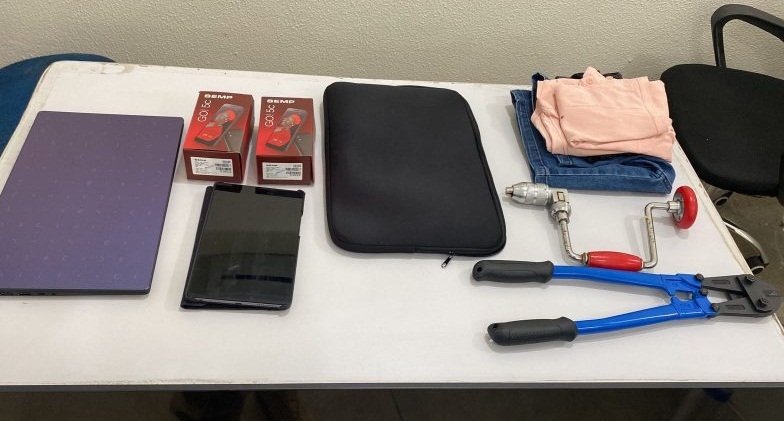 Durante o cumprimento dos mandados, foram apreendidos materiais utilizados nos arrombamentos, produtos furtados e as roupas usadas nas ações criminosas.