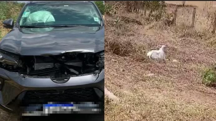 Apesar do susto, o advogado saiu ileso, e apenas seu carro foi danificado. O novilho permaneceu vivo no local.