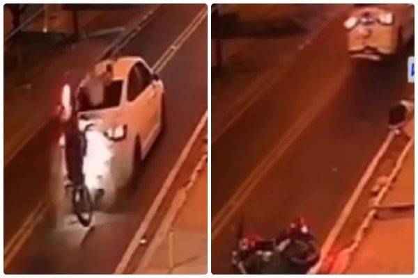Com o impacto, a vítima caiu desacordada no chão da rua.