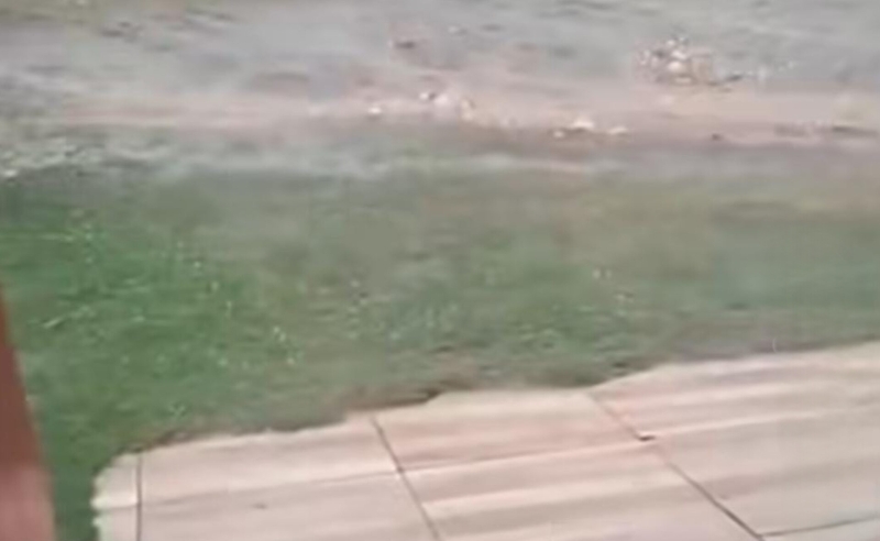 Nas imagens, é possível ver o granizo espalhado pelo chão, evidenciando a intensidade momentânea da instabilidade climática. (Foto: Reprodução)