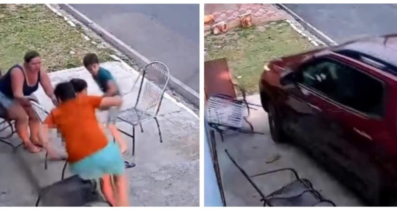 As imagens mostram que os quatro estavam sentados em cadeiras na calçada quando, de forma repentina, o veículo avançou sobre o local. Por questão de segundos, o carro não atingiu as pessoas, que conseguiram se levantar a tempo, evitando uma tragédia.