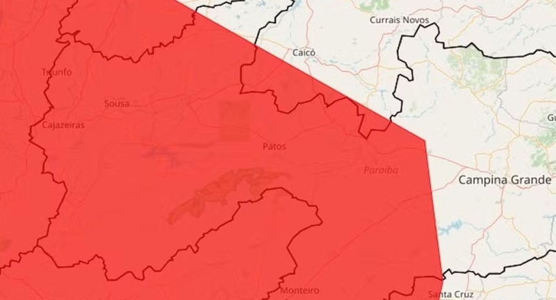O Instituto Nacional de Meteorologia (Inmet) emitiu, neste sábado (28), um alerta vermelho de grande perigo para chuvas intensas nas cidades do Vale do Piancó. O aviso indica previsão de precipitações superiores a 60 milímetros por hora ou acima de 100 milímetros por dia, com elevado risco de alagamentos, transbordamentos de rios e deslizamentos de encostas.